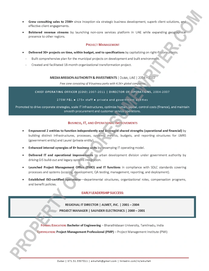 Written for a senior executive seeking a position as a Chief Executive Officer/CEO, or President for high growth technology companies and IT services companies. This sample executive resume was written with an emphasis on private equity consulting, Mergers & Acquisitions/M&As and corporate growth optimization.
