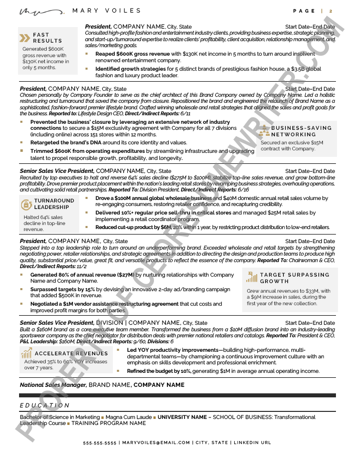 One-Page Executive resume example