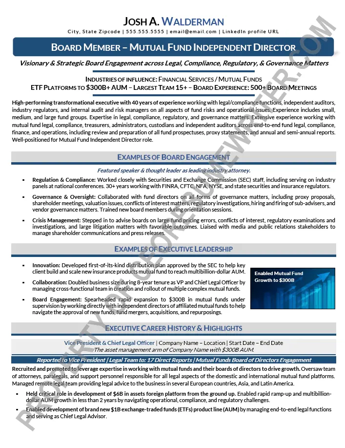 Executive board resume example