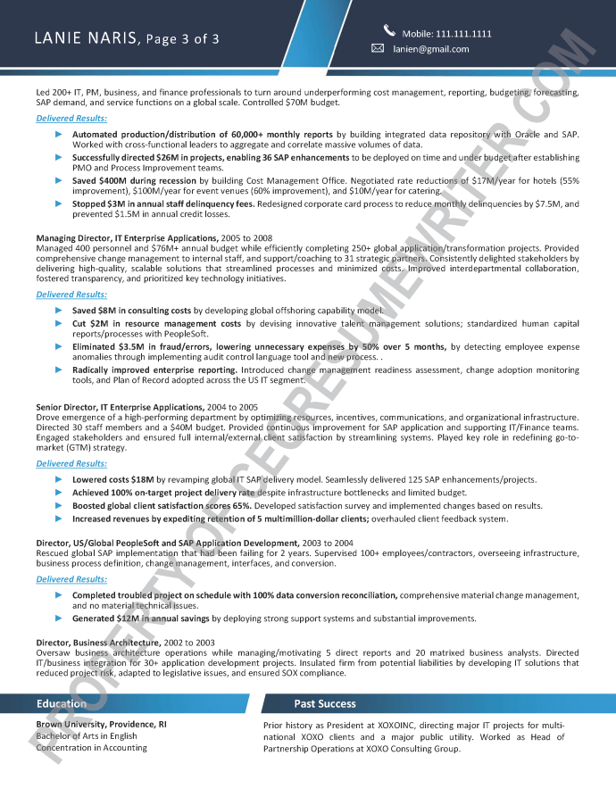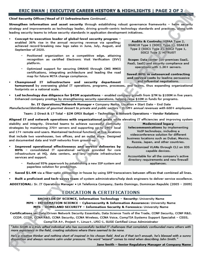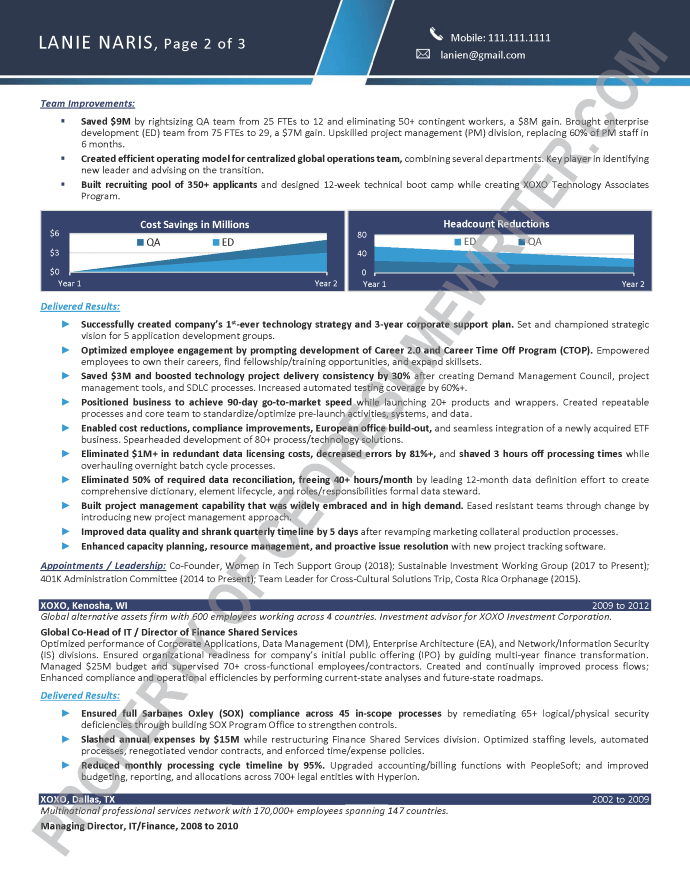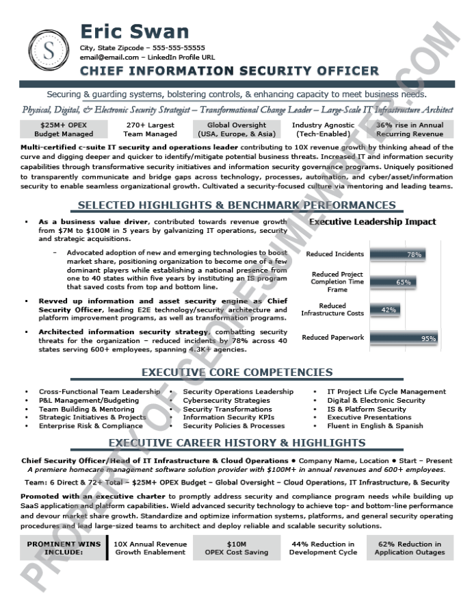 Written for a senior technology executive seeking a position as a Chief Information Officer/CIO or Chief Technology Officer/CTO for premier global companies in the finance and banking industries. This technology executive sample resume was written with an emphasis on enterprise strategies and leading infrastructure transformations.