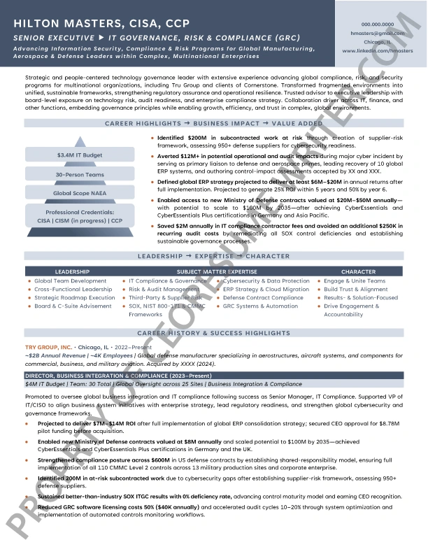 If you are a Director, VP, CxO, or Board Member interested in an executive resume package or working directly with Mary Elizabeth, click below to schedule a complimentary 15-minute call with one of our team members