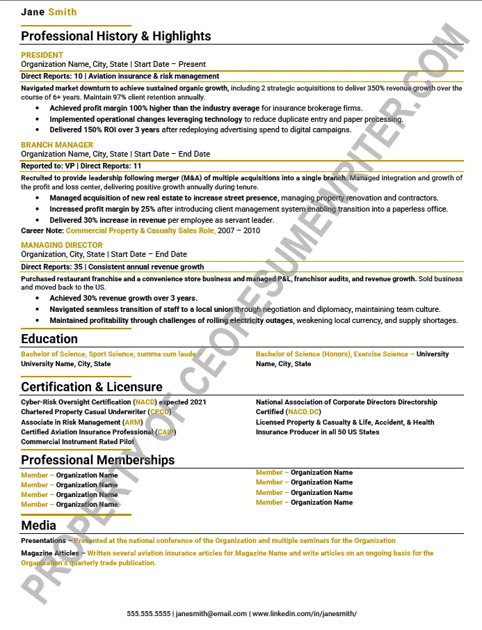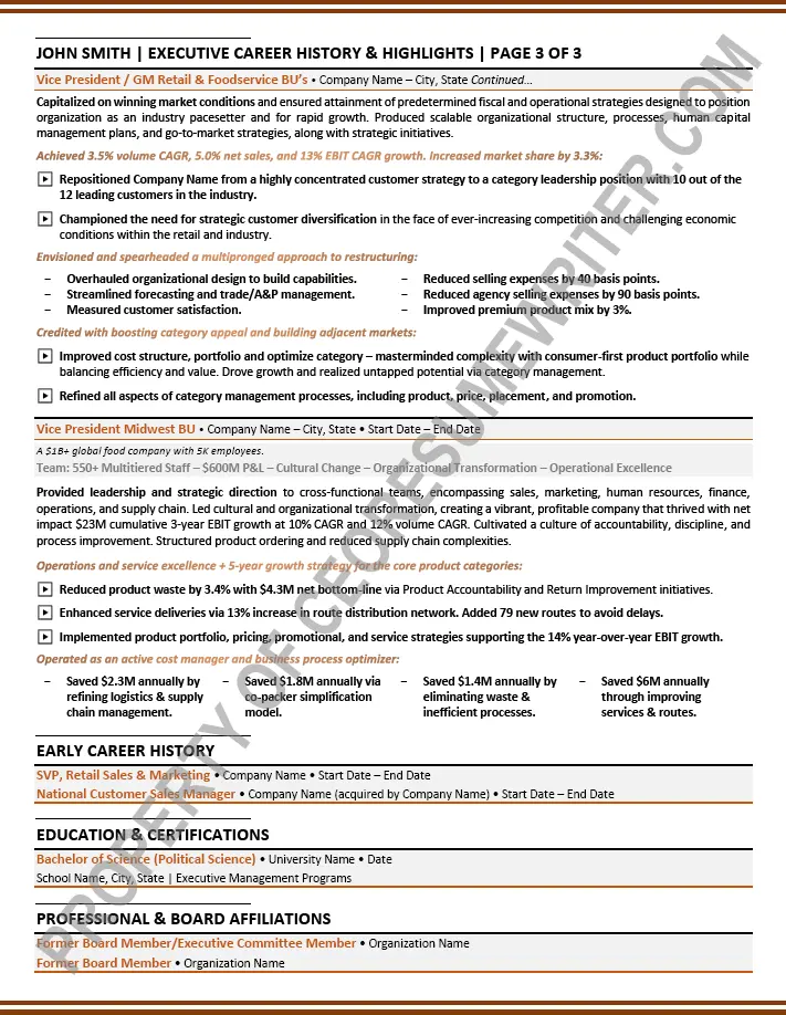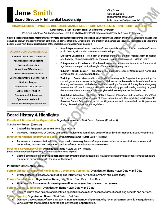 Executive board resume example